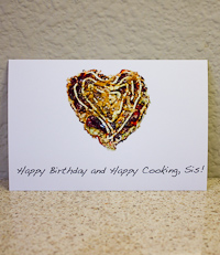 Katsuboshi Packets $2.99 Bonito Flakes as a topping. These are small sized flakes. (individual small packets, 3g each, 5 or 6 depending on stock. | Tenkasu $3.99 Tempura bits are added to the Okonomiyaki batter to add a great texture. (70-100g depending on stock) | Ao-Nori $3.99 Seaweed Flakes as a topping. These are small flakes/powder. (May be 1 package or include smaller packets depending on stock) | Custom Greeting Card $4.99 A greeting card showing a beautiful heart shaped Okonomiyaki, printed on high quality 4x6 photo paper with a message of your choice. |